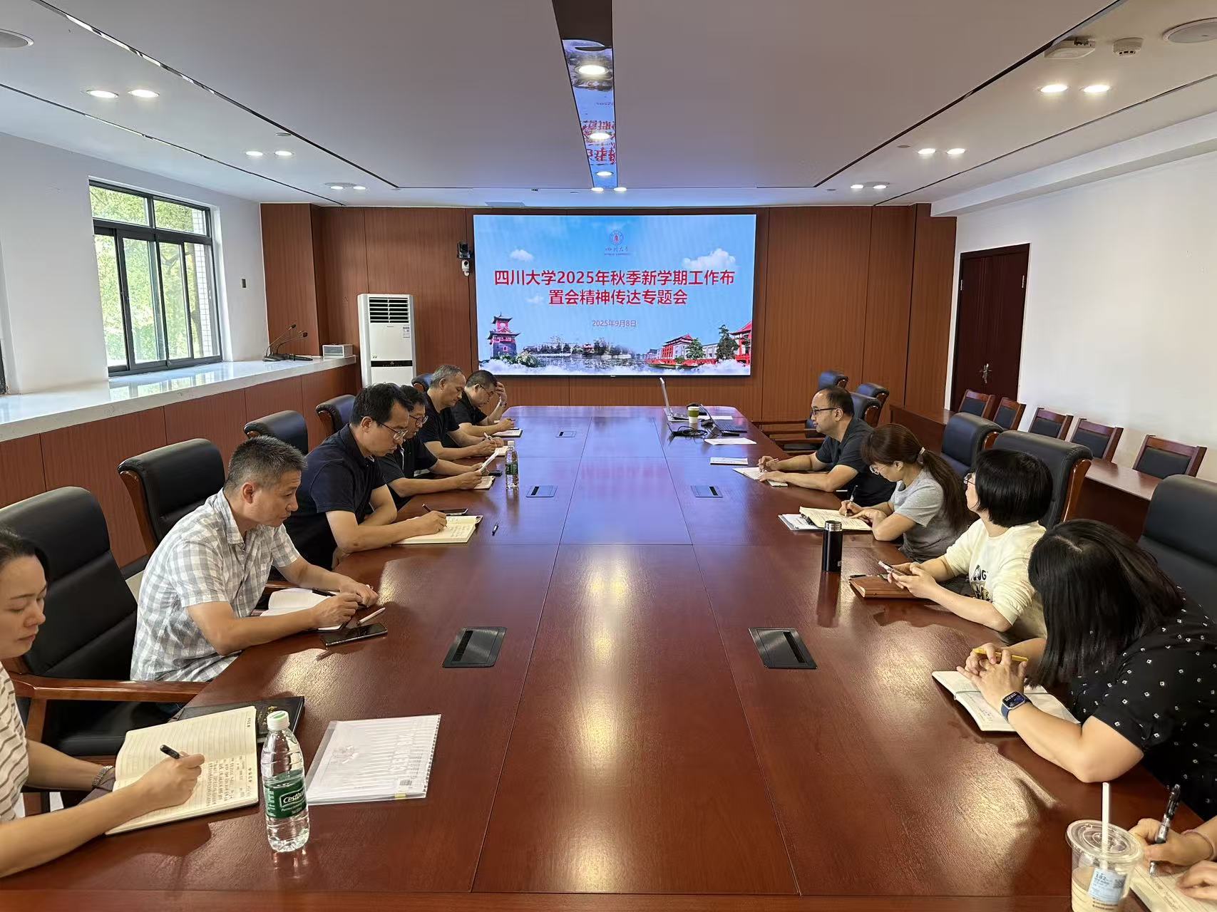 林宏辉书记传达四川大学2025年秋季新学期工作布置会精神,校党委书记甘霖同志在大会上深入分析了学校发展面临的新形势新任务,充分肯定了上学期各项工作成绩,结合核心办学指标,深刻剖析了存在的问题和面临的挑战,就进一步加快学校高质量发展作出全面部署。四位校领导进一步围绕贯彻学校“三年行动计划”,科学制定“十五五”规划,进一步提升本科教育质量,加强人才引育,打造一流师资队伍等重点工作作具体部署。