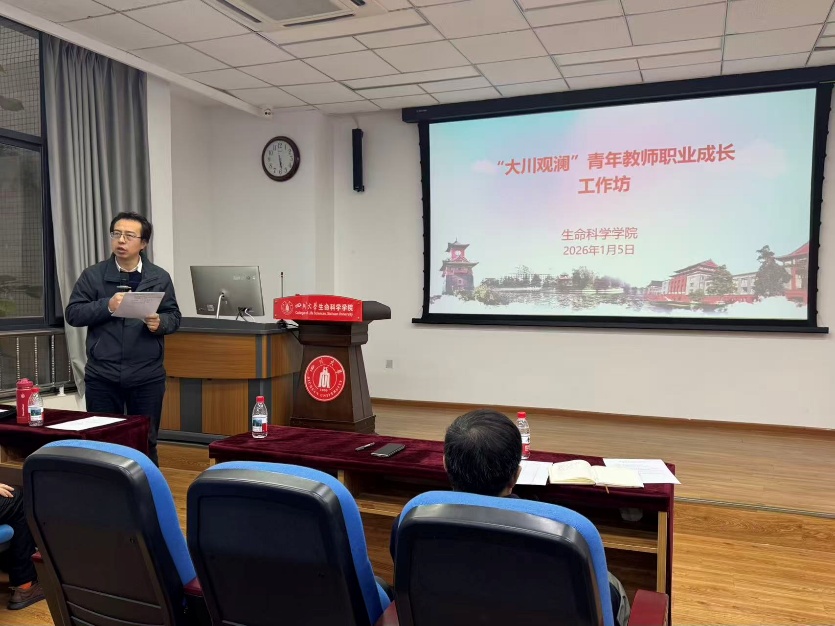 为深入贯彻落实《四川大学关于促进青年教师成长的若干措施》文件精神,积极响应学校关于开展 “大川观澜”青年教师职业成长工作坊的号召,我院于1月5日下午在437必赢会员中心学术报告厅成功举办2026年度首次青年教师职业成长工作坊活动。四川大学人才办副主任穆飞、学院党委书记林宏辉、院长毛康珊、副院长李中瀚,学院资深教授张跃林、杨毅、何兴金、邹方东、孙群、曹毅、张胜等,以及学院60余位青年教师参加了本次工作坊活动。