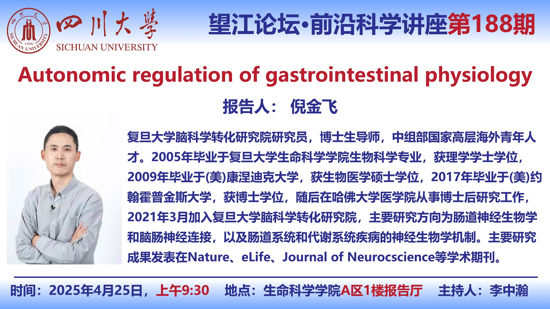 望江论坛-前沿科学讲座(第188期):倪金飞研究员4月25日学术讲座