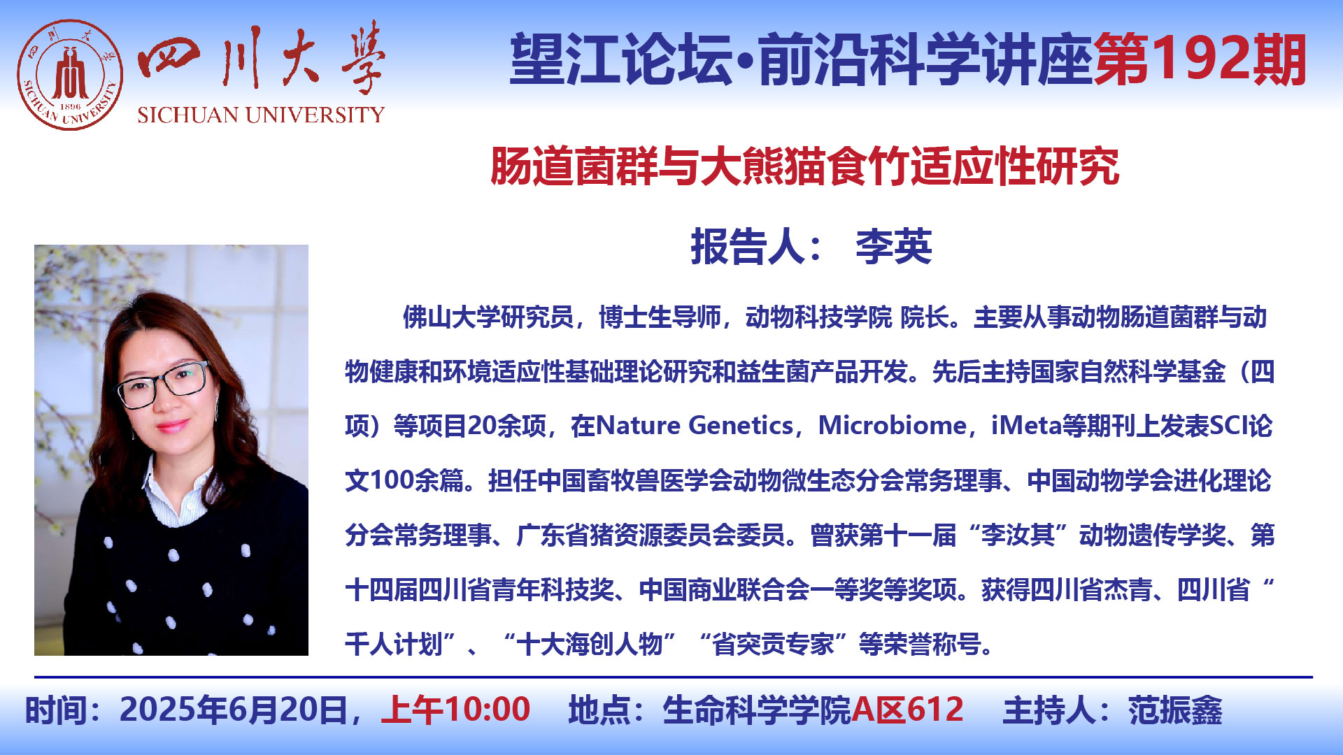 望江论坛-前沿科学讲座(第192期):李英研究员6月20日学术讲座