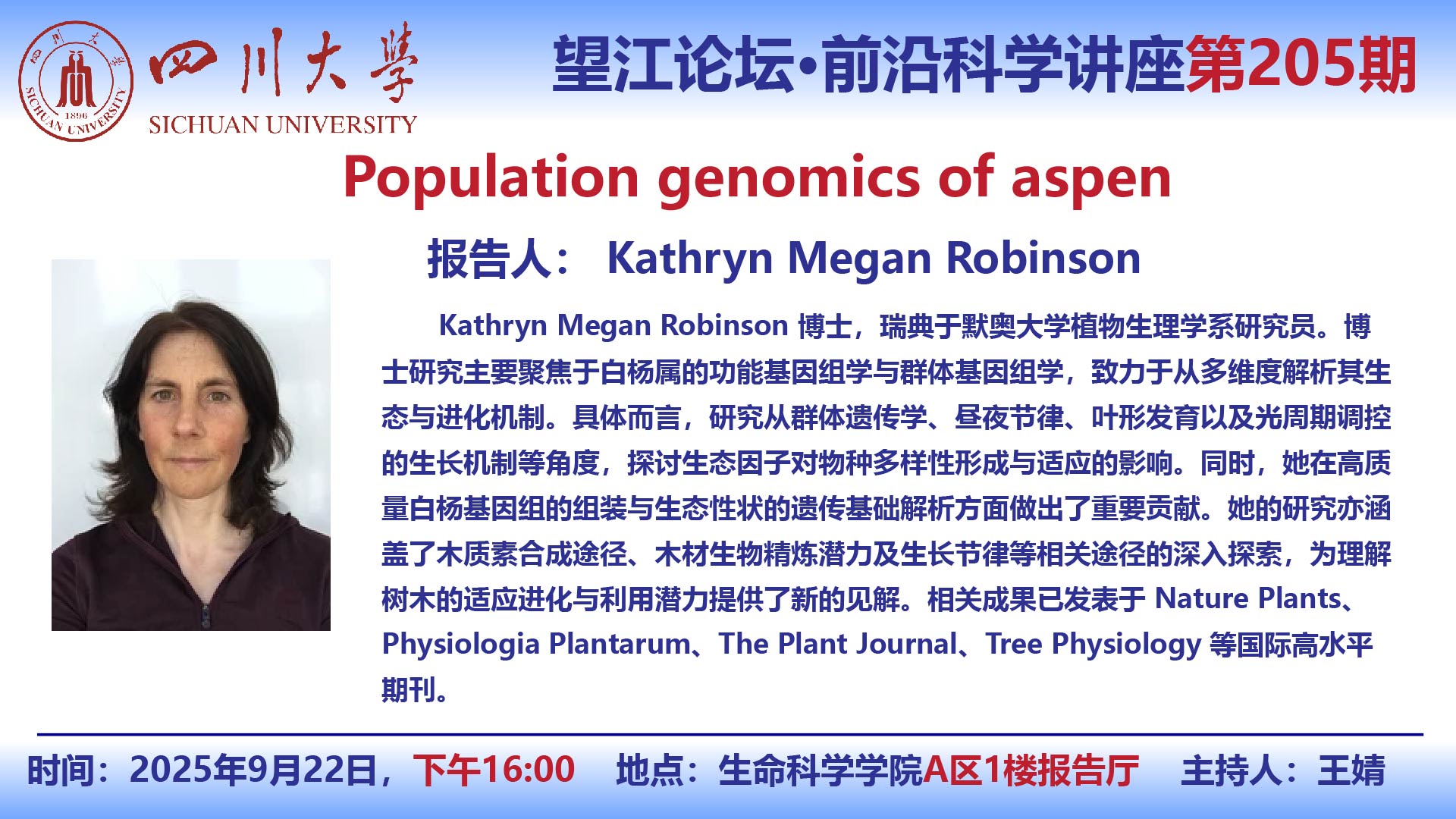 望江论坛-前沿科学讲座(第205期):Kathryn Megan Robinson研究员9月22日学术讲座